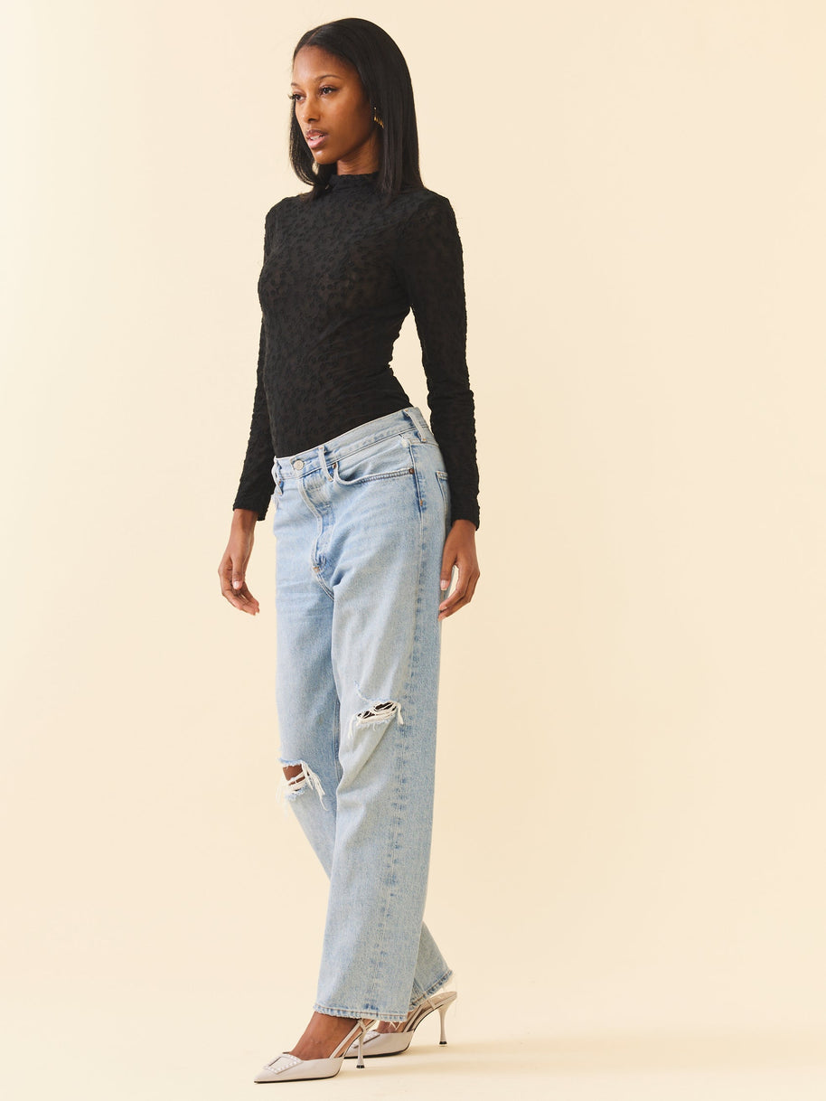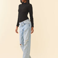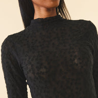 Basics don't mean boring. Meet The Rose Lace Bodysuit. A mock neck, long sleeve bodysuit decorated in dainty lace rose. This top is crafted in semi-sheer, double lined mesh designed to have a slimming fit while enough stretch to give you room to breathe. Wear with your favorite pair of denim or pair layer under a dress. Pairs well layered under the Daisy Dress.